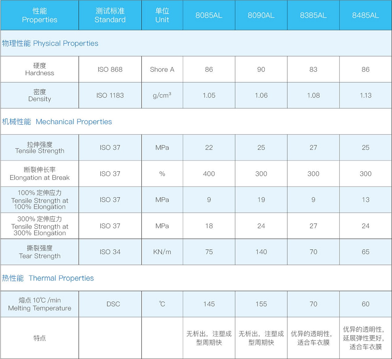 Excellent processing stability and resistance to water, oil and chemical corrosion.