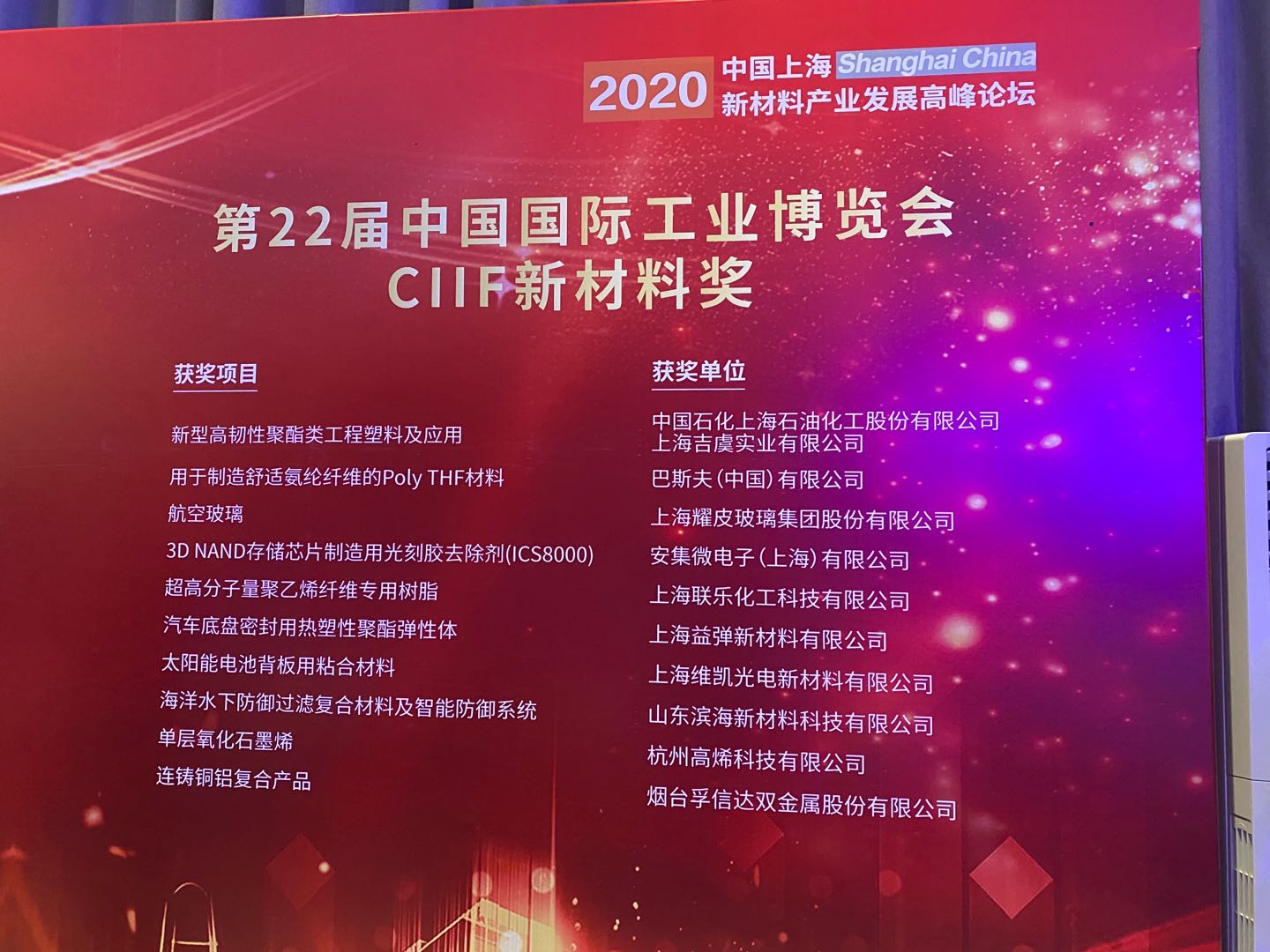 上海益彈獲得第22屆工博會(huì)CIIF新材料獎(jiǎng)